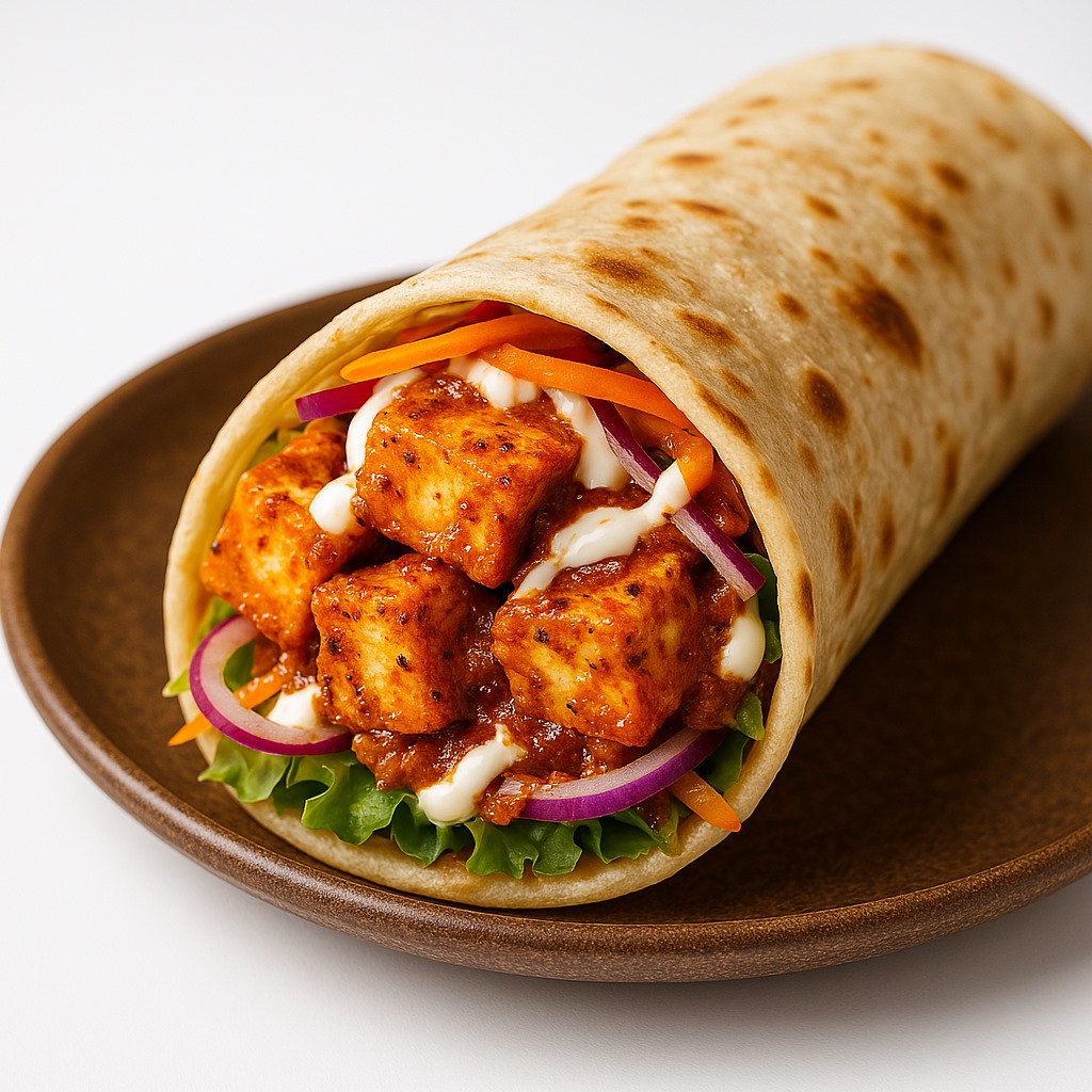 Delicious Paneer Roll with 200g paneer, mixed veggies, and flavorful sauces, wrapped in a soft paratha for a tasty and satisfying treat.