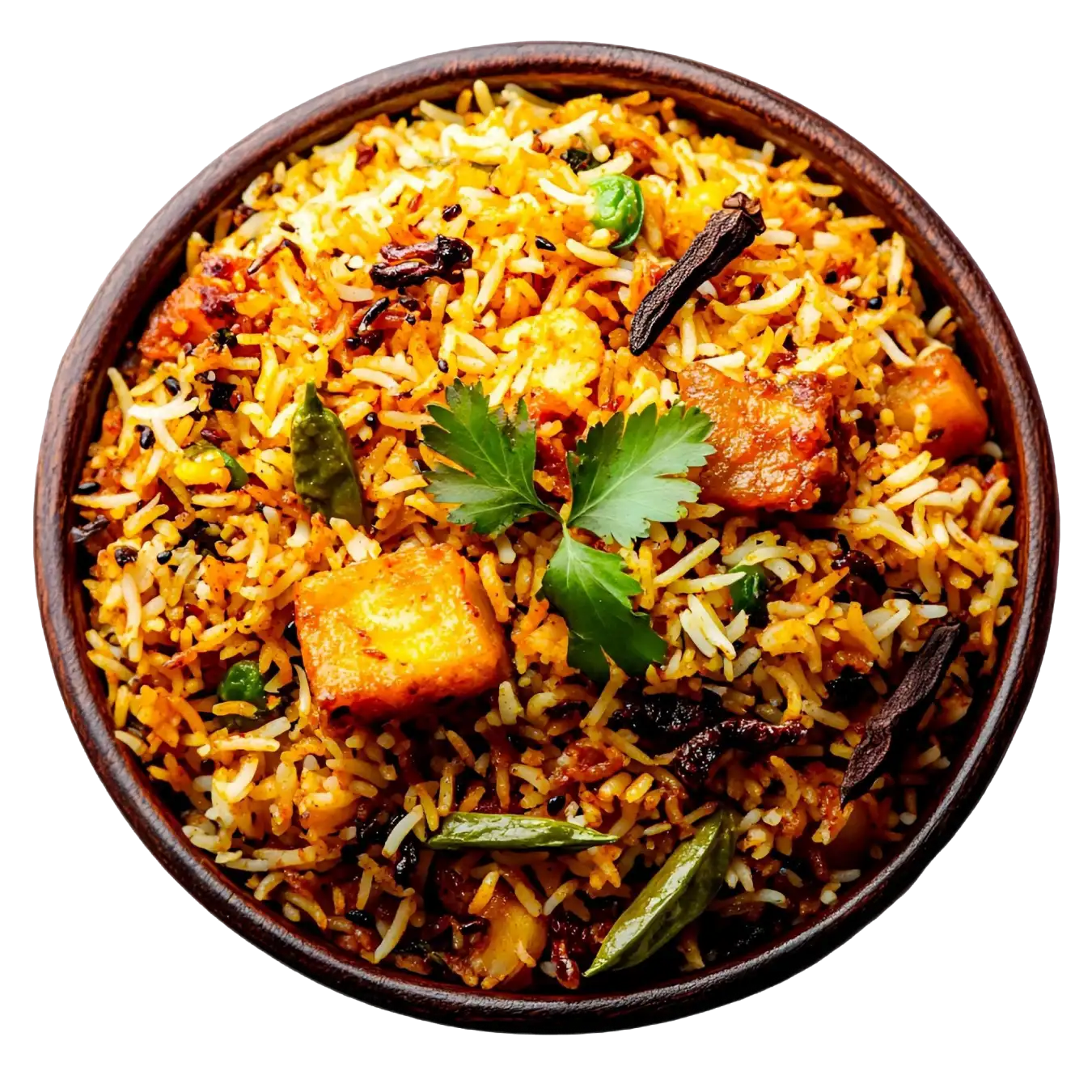 Flavorful Paneer Biryani with 200g paneer, cooked with aromatic spices for a rich and satisfying meal.